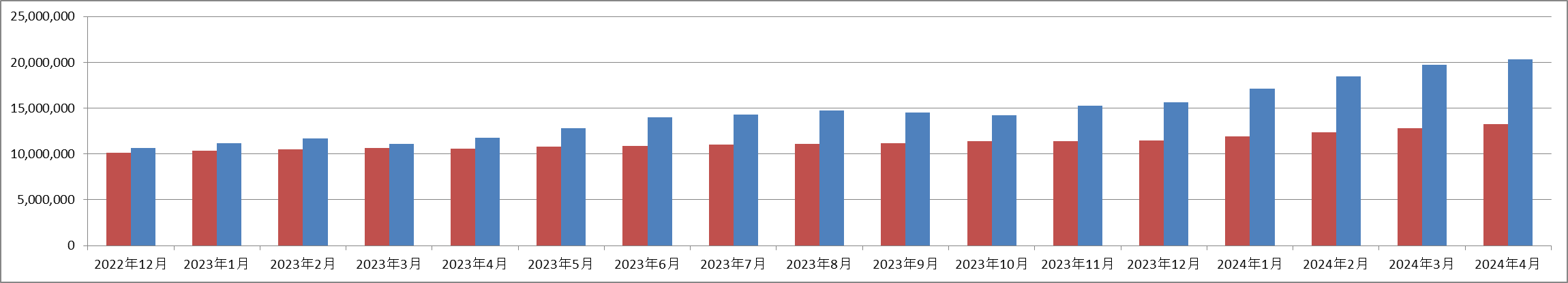 | 4月 | 13,274,018 | 20,323,421 | +7,049,403 |