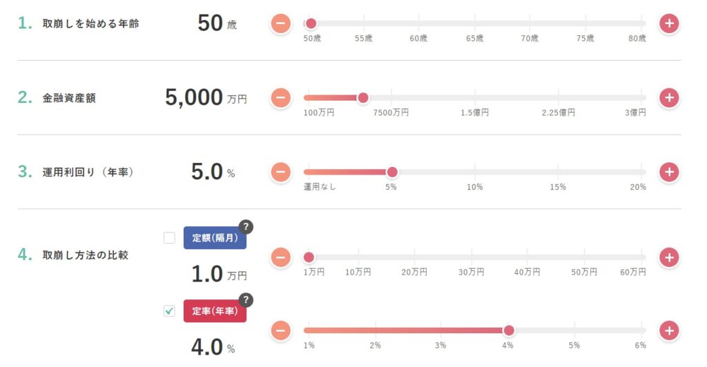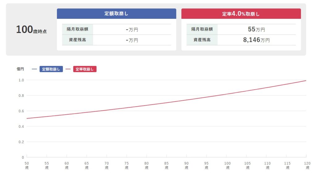 相場は波があるので、こんなにキレイに右肩上がりになりませんが、それでも運用し続けた方が資産は長持ちするようです!