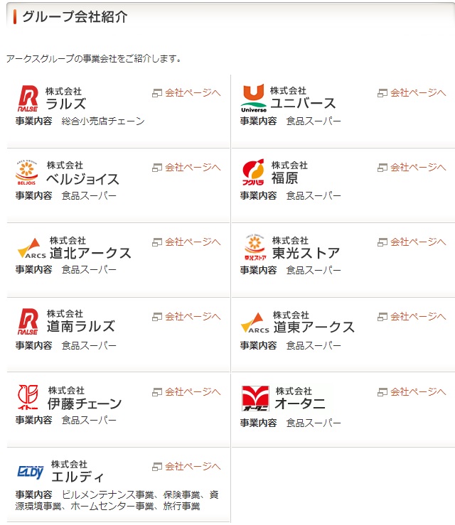 アークスグループは、北海道・東北・北関東に拠点を置くスーパーマーケット10社とその他の事業会社1社で構成される食品流通グループです。