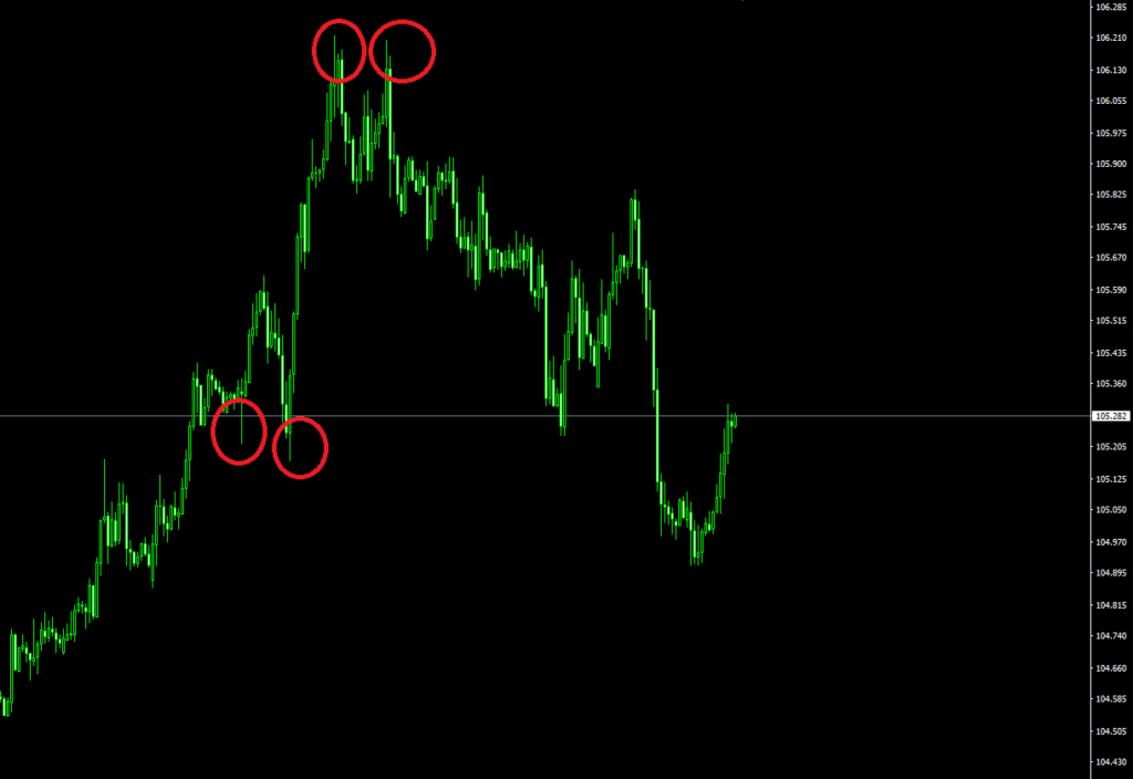 上のチャートを見てもらうと〇で囲んだところでヒゲを出しています。