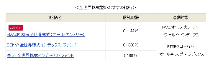 まず初めに、『つみたてNISA』で積み立てる銘柄は、「全世界株式」です。