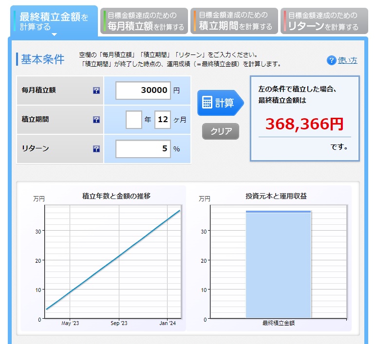 これは、積立期間が30年だったとしたら30年後にどれくらいの金額になっているのかを計算しています。