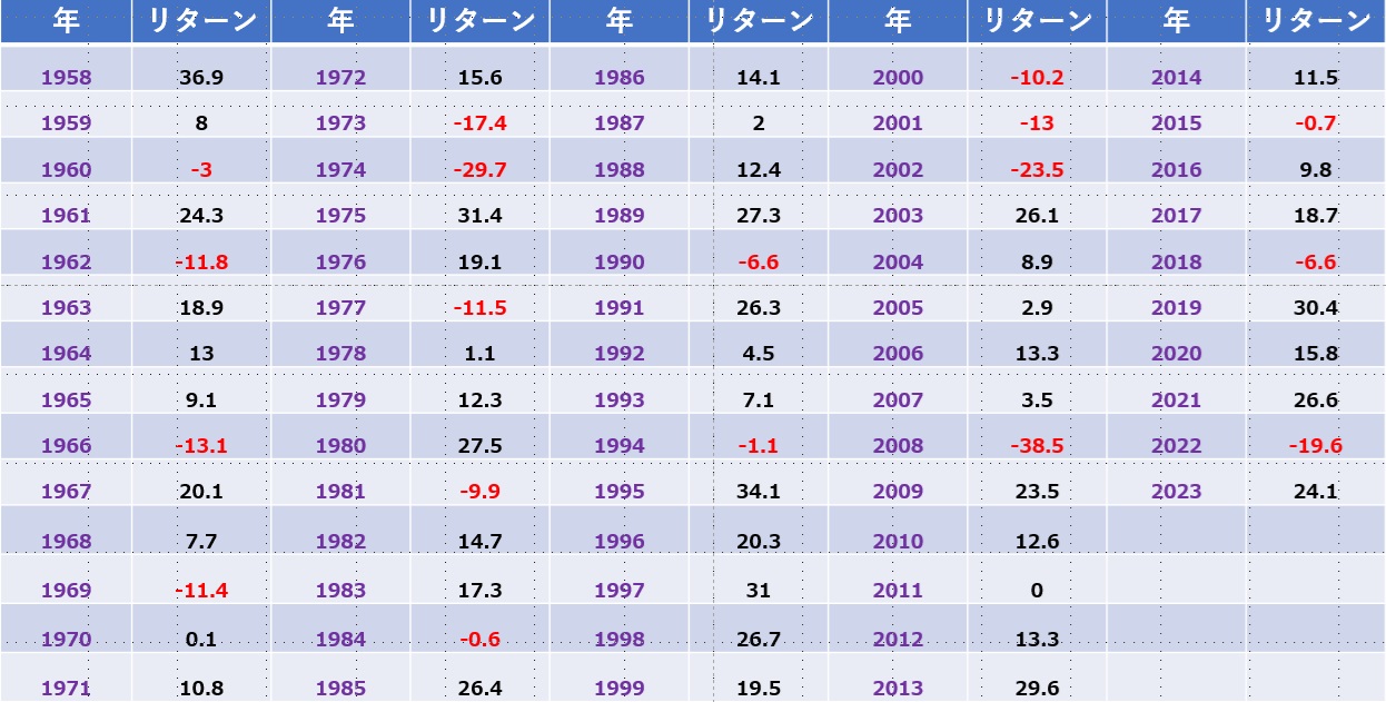 過去66年間でリターンがプラスだったのが47回、マイナスだったのが19回